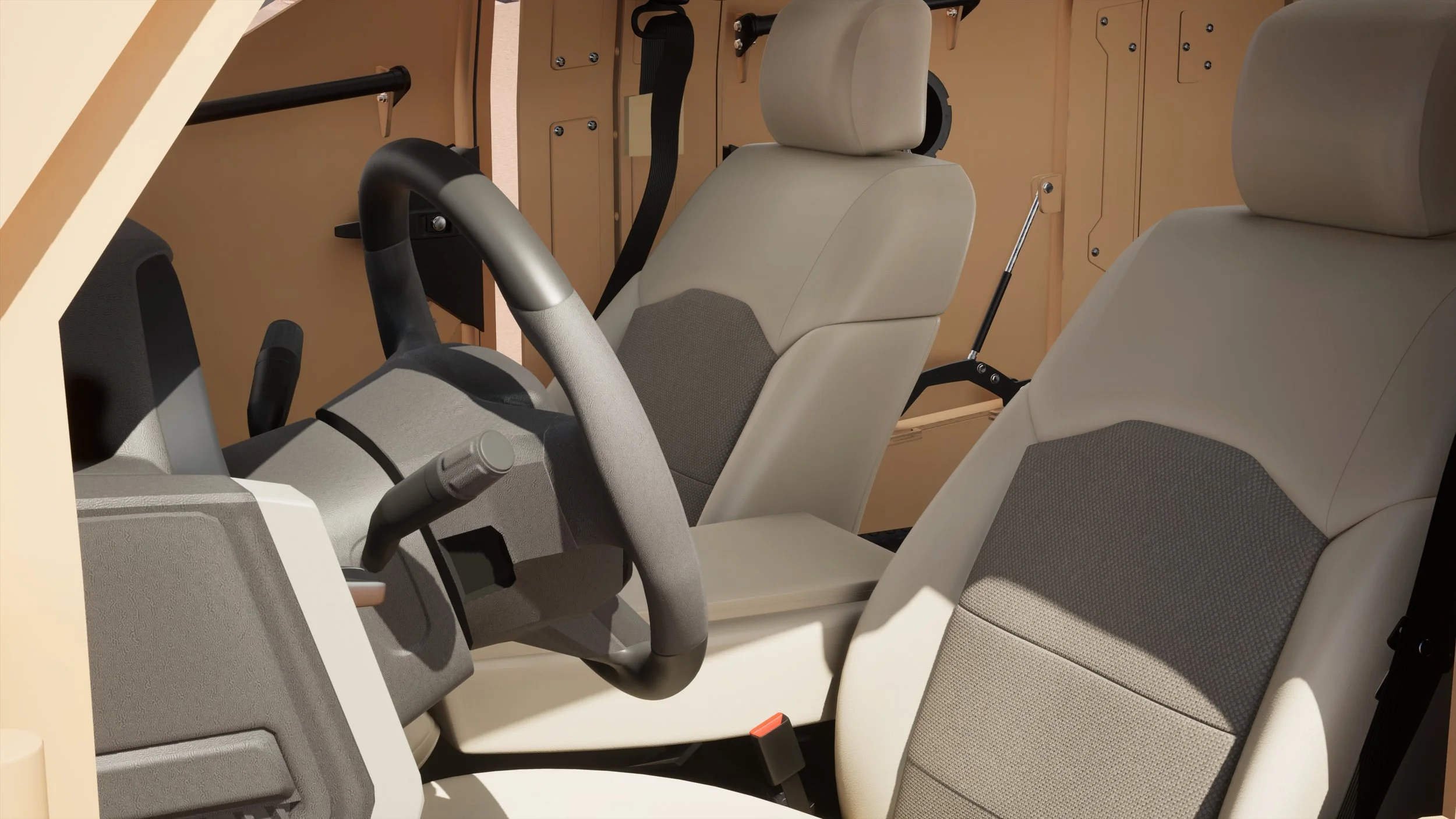 Second row passenger doors will act as the main entry point for rear occupants in both Standard and Cargo configurations. Custom configurations are available. Please contact us to customize your ATLAS APC.
